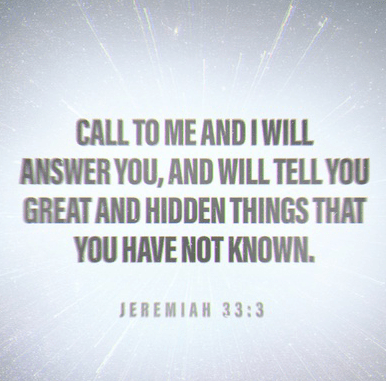 Call unto me, and I will answer thee, and shew thee great and mighty things, which thou knowest not.