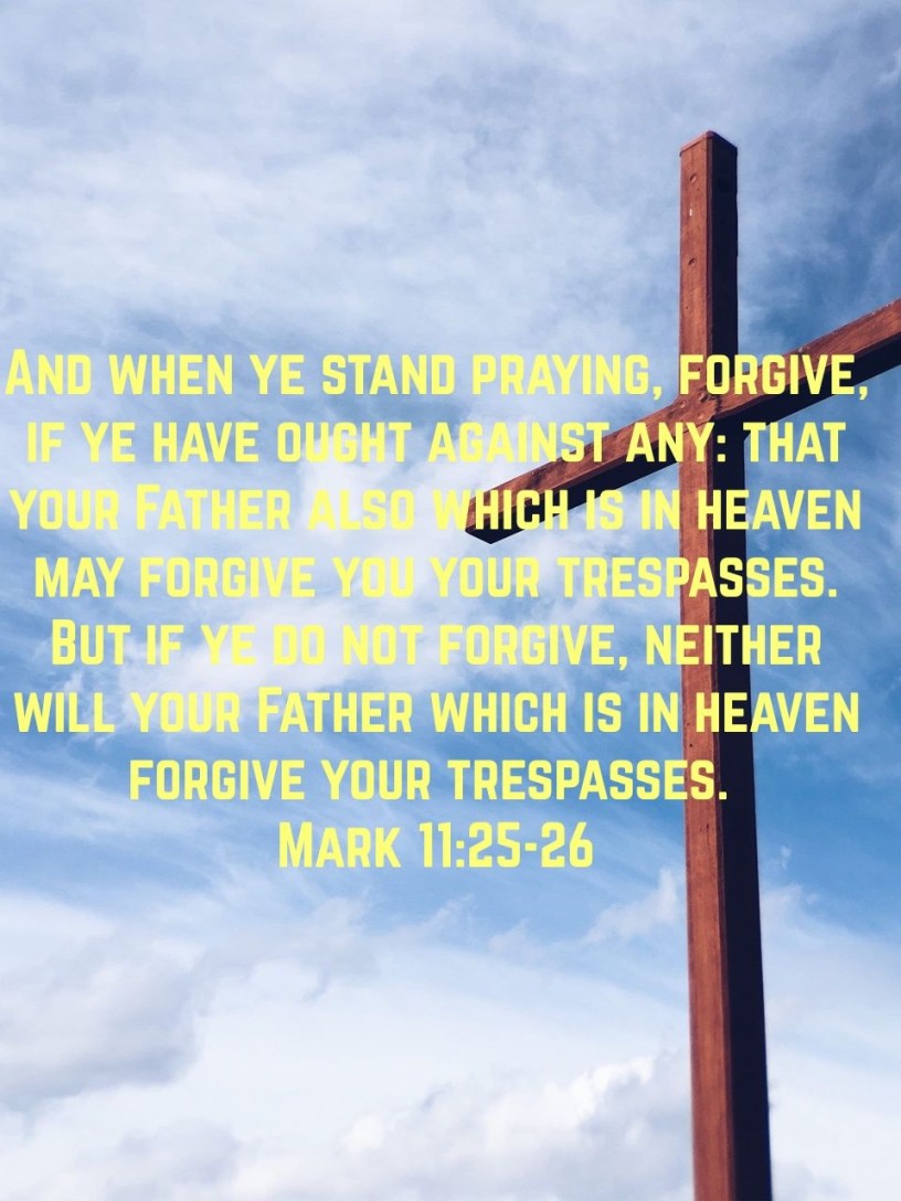 “And when ye stand praying, forgive, if ye have ought against any: that your Father also which is in heaven may forgive you your trespasses. But if ye do not forgive, neither will your Father which is in heaven forgive your trespasses”. Mark 11:25-26.
