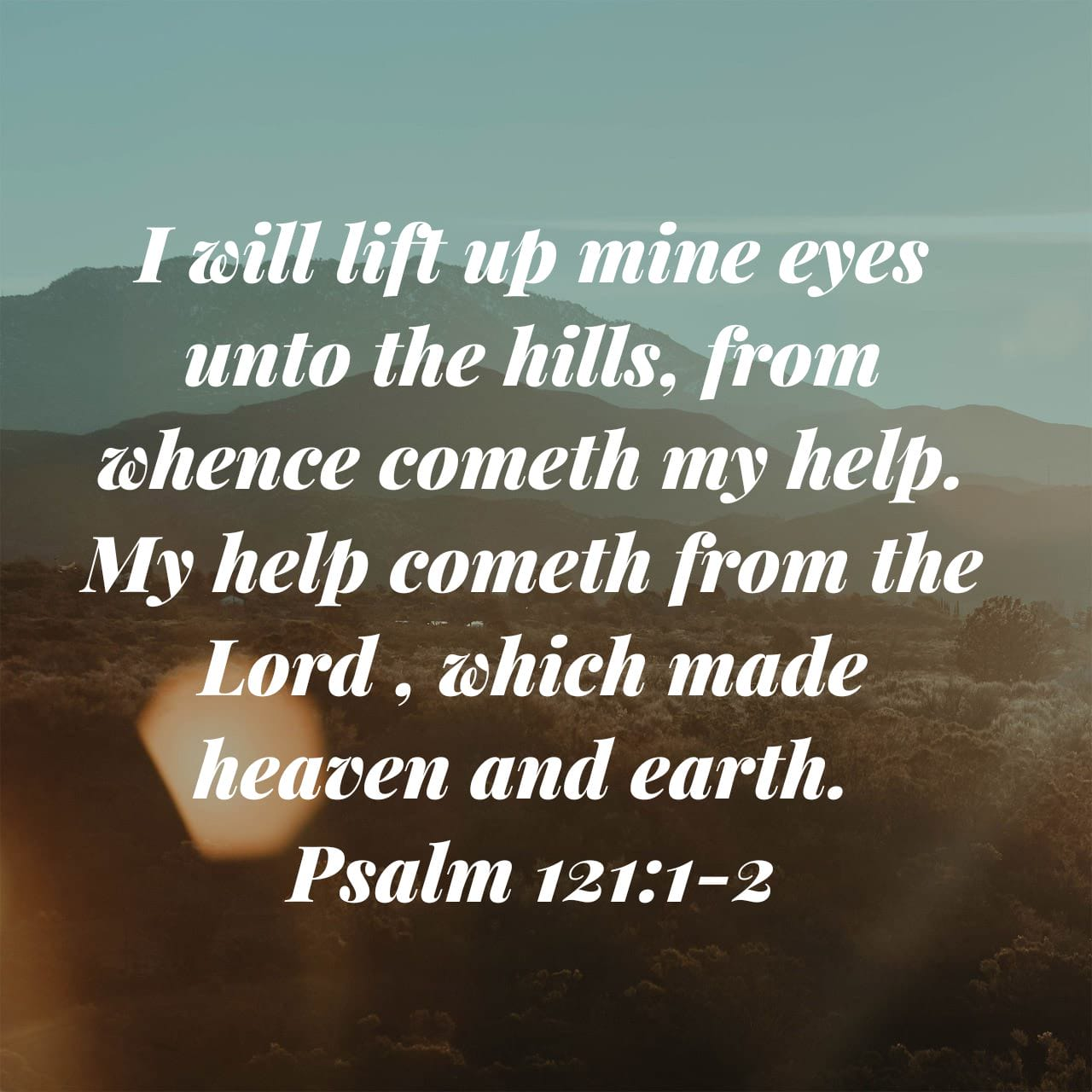 I will lift up mine eyes unto the hills, from whence cometh my help. My help cometh from the Lord , which made heaven and earth.