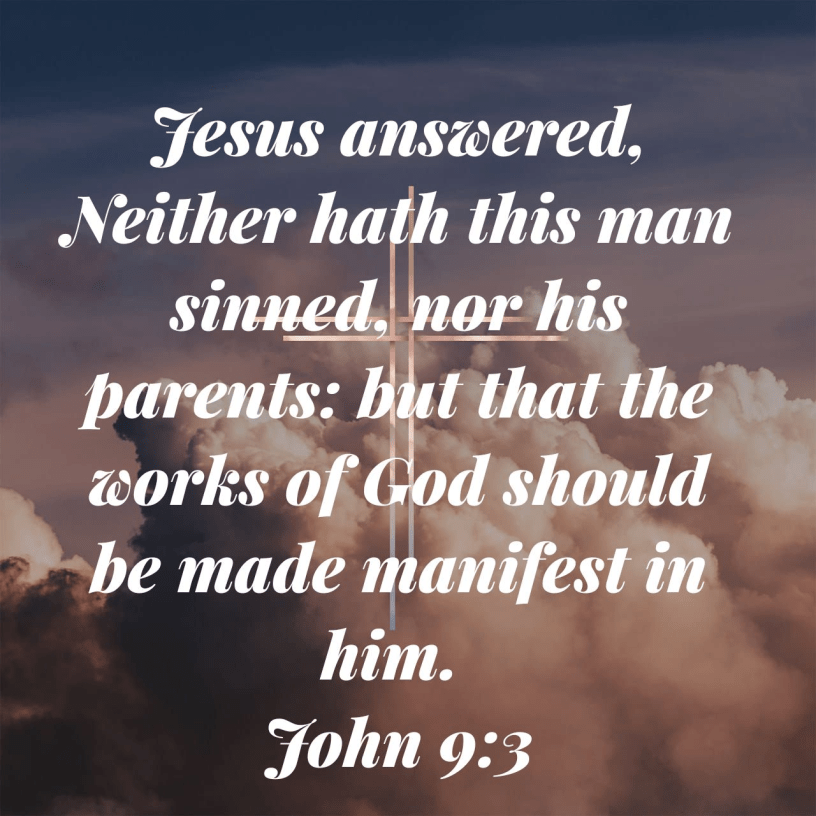 “Jesus answered, Neither hath this man sinned, nor his parents: but that the works of God should be made manifest in him”.
