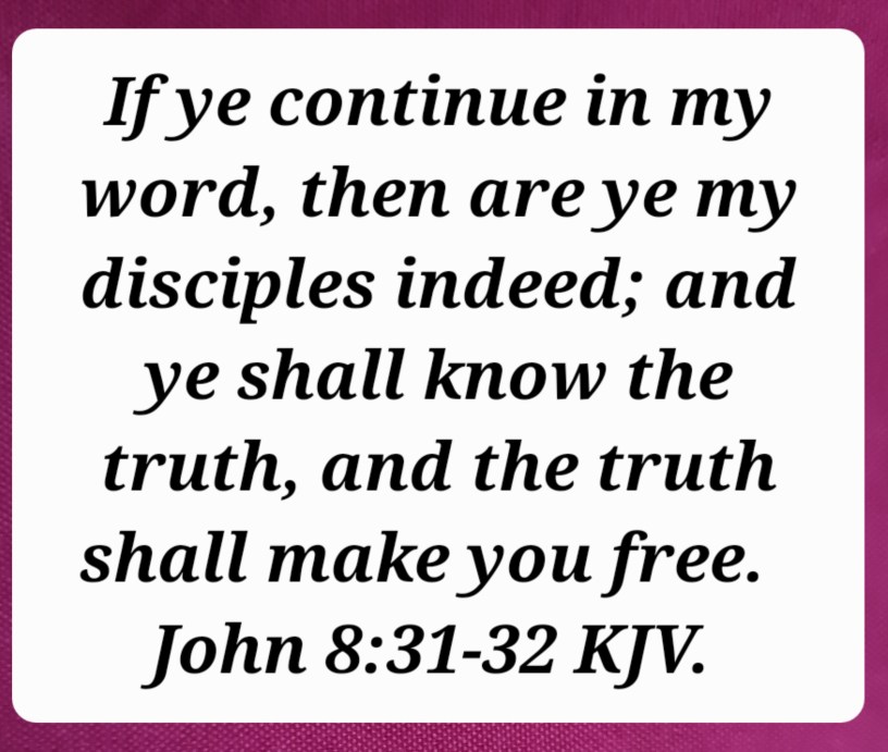 “Then said Jesus to those Jews which believed on him, If ye continue in my word, then are ye my disciples indeed; and ye shall know the truth, and the truth shall make you free.”