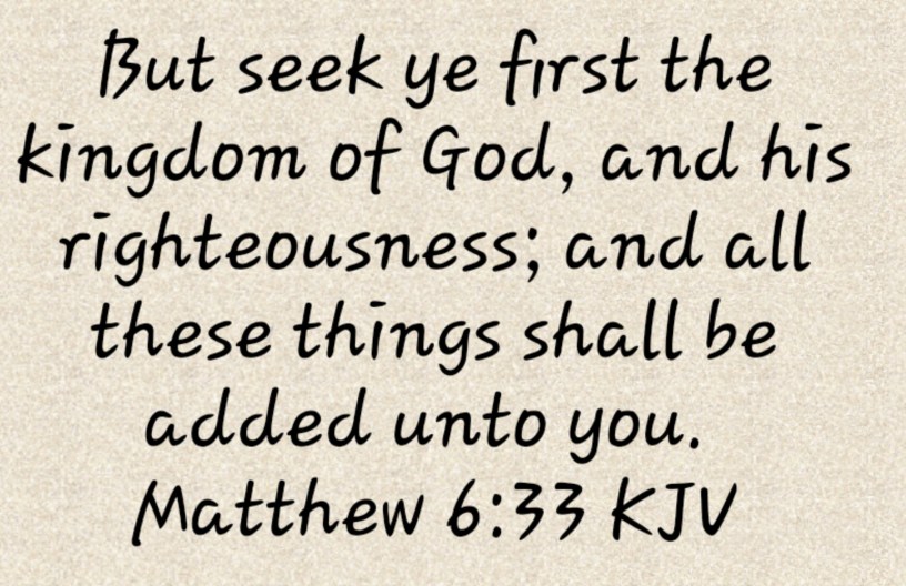 “But seek ye first the kingdom of God, and his righteousness; and all these things shall be added unto you“. (Matt 6:33 KJV).