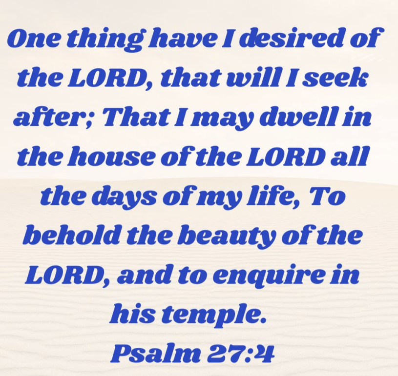 “One thing have I desired of the LORD, that will I seek after; That I may dwell in the house of the LORD all the days of my life, To behold the beauty of the LORD, and to enquire in his temple.” (Psalm 27:4 KJV).
